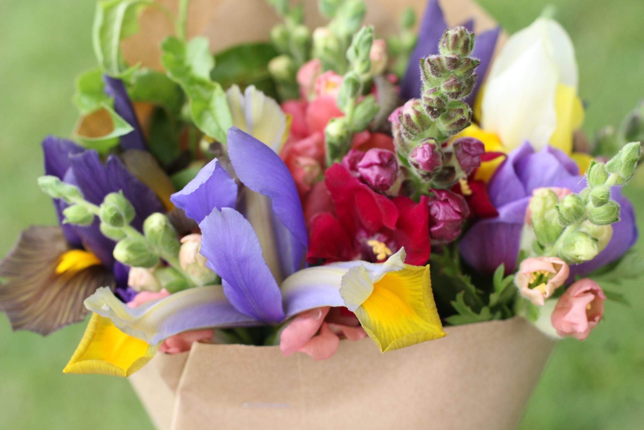 For each of four weeks in the spring, you will receive a custom flower arrangement (4 total) that includes flowers grown on our beautiful mountain farm.